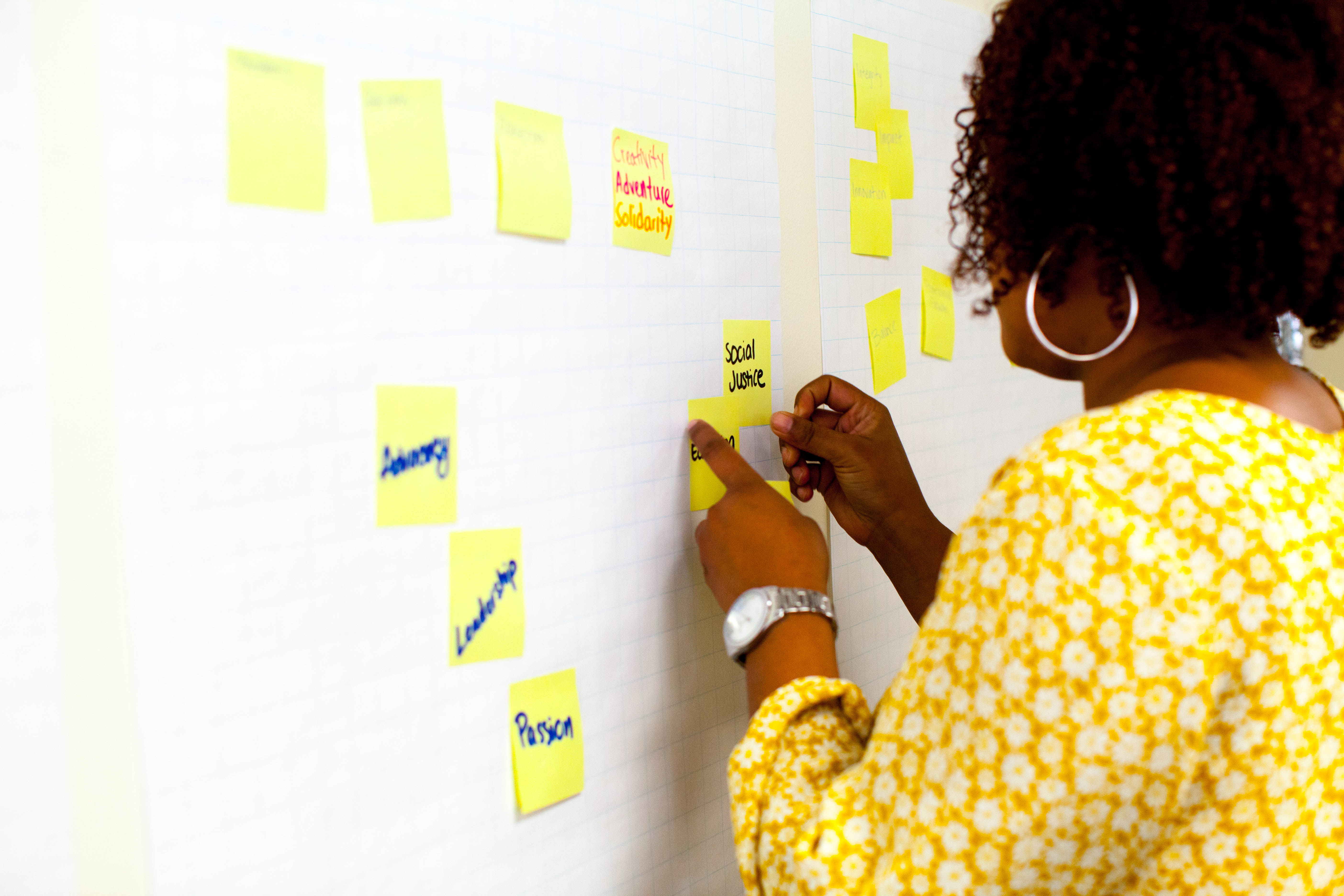 A Community Resource Exchange (CRE) client uses journey mapping in a leadership development workshop. (Photo by Thi Q. Lam)