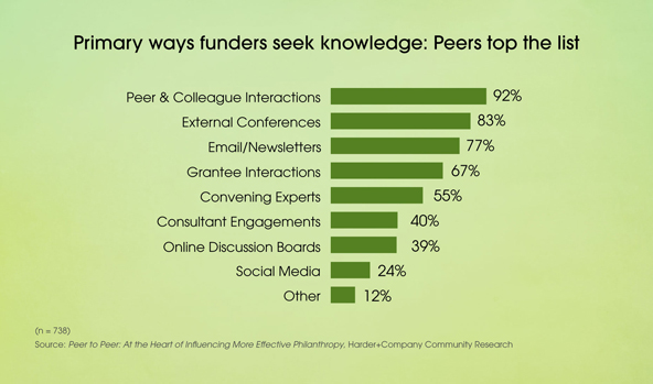 Understanding that peers are a primary source in sharing knowledge about philanthropic practice has also caused us to reflect on our own role to date: Where have we been proactive about sharing and where haven’t we? With these findings in hand, we will be more conscious curators of the knowledge we amplify and share with our peers going forward.