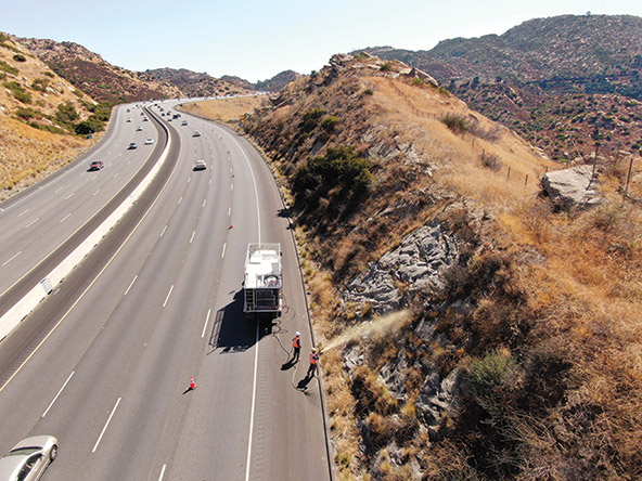 The first test results from four pilots in Ventura County, San Diego County, and San Mateo County are encouraging. “We treated 20 miles of roadside during the red-flag period,” Acosta says about one of the pilots. “We got zero ignitions in the treated area during October.” In November, an area fire smoldering in underbrush was easily extinguished by a fire crew, but, Acosta adds, “according to predictions the fire would have grown to an acre if the area had not been treated.”