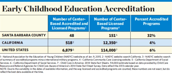 Foss: The number of accredited centers in Santa Barbara County rose from six in 2004 to 48 in 2015, with several more in the candidacy process. Today, 32 percent of centers are accredited, up from 25 percent in 2014. The rate of accreditation in Santa Barbara County is now five times the national rate and eight times the state rate. The fund considers this a significant win for children and families in Santa Barbara County.