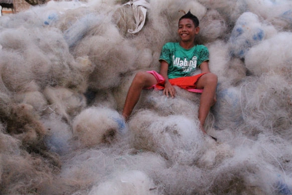 A social enterprise in the Philippines, Indonesia, and Cameroon supplies discarded fishing nets for use in Interface’s carpets. (Photo courtesy of Interface and ZSL)