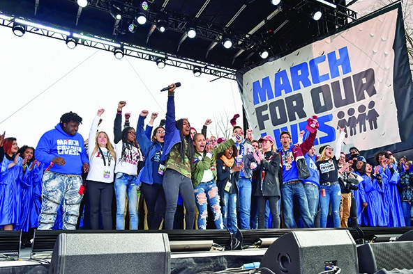 Young people from Parkland, Florida, and other cities onstage at the March for Our Lives protest in Washington, D.C., on March 24, 2018. (Photograph by Kevin Mazur/Getty Images)