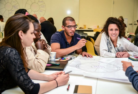 MIT D-Lab Innovation Ecosystem Builders Fellows and Scale-Ups Fellows at a convening in April, 2018. (Photo courtesy of MIT D-Lab)