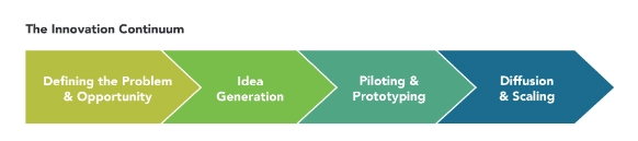 Moving from identifying a problem to scaling up a solution is what we call “the innovation continuum.” This model helps us to identify the needs, opportunities, and strategies most critical at various points in a social innovation’s trajectory.