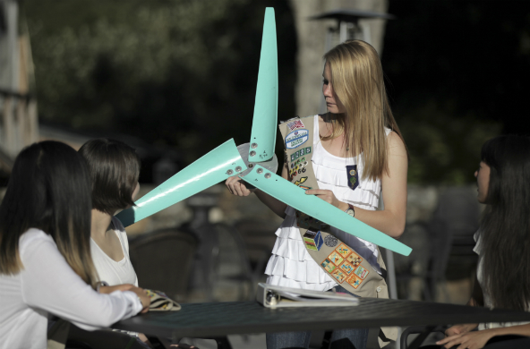 Gold Award Girl Scout Jamielee Bueneman drafted plans and constructed a prototype for a wind turbine made from everyday materials, potentially providing a low-cost source of renewable energy. (Photo courtesy of Girl Scouts of the USA)