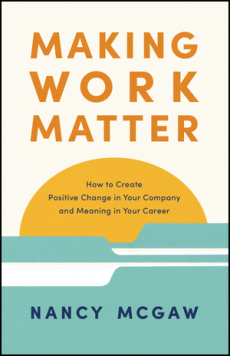 Fast forward to 15 years later, I have mentored nearly 300 innovators through the program who work in large companies and want their work to deliver economic value to their companies while creating a healthier, fairer, more just, and sustainable world. They see opportunities to deliver economic value for the companies and positive impact for people and planet that others may miss—or choose to ignore. Through my book, Making Work Matter: How to Create Positive Change in Your Company and Meaning in Your Career, I wanted to share their remarkable stories, lessons we have learned, and to introduce the strategies we have found to be effective. I believe thousands of people want to enact this kind of change in their companies and, by doing so, find more meaning in their careers.—Nancy McGaw